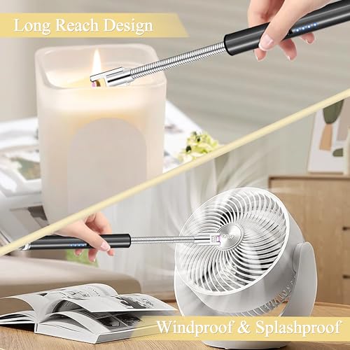 - [HASSLE-FREE CHARGING, CLEAR DISPLAYS AT A GLANCE]- Electric candle lighter is equipped with clear power display function. When Four indicator lights on means full charge; one light on means it needs charging. When charging, the power indicator flashes from top to bottom. Each fully charge takes about 60 minutes. In addition, candle lighters adopts a Type-C interface and USB charging cable, help you easily deal with low power situations.