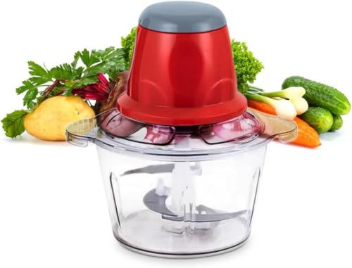 Generic - مفرمة لحوم كهربائية ومفرمة طعام للمطبخ بقدرة 250 وات مع شفرات من الفولاذ المقاوم للصدأ وسعة 2 لتر للاستخدام المنزلي لون أحمر