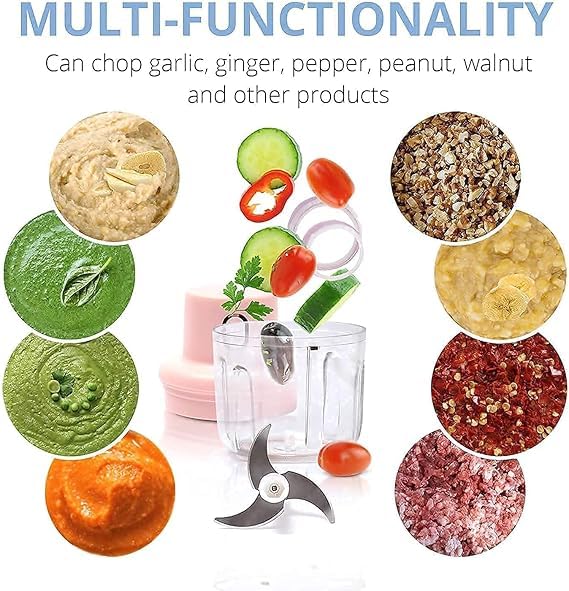 - HIGH QUALITY SHARP: the mincer has strong blades designed with deliberate angles to ensure all ingredients from onion and garlic to nuts and papers are finely and smooth.