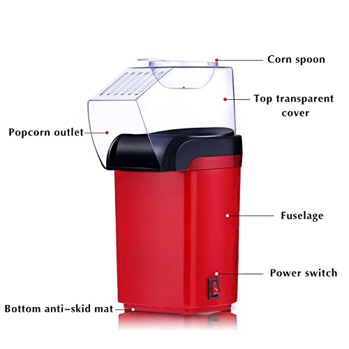Lovskoo - Electric Popcorn Machine Maker Popper With Measuring Spoon, Quick Popcorn, Oil Free, Good For Watching Movies,Party, Holiday (Red)