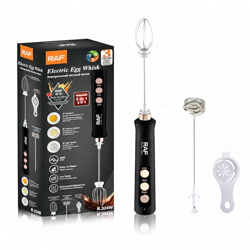 Generic - Electric Rechargeable Coffee Mixer,EGG Whisk, 80W 2-in-1 Milk Frother, 3-Speed Handheld Mixer with Low Noise,For latte coffee cappuccino (3 Years Warranty)(Black, 80 Watt)