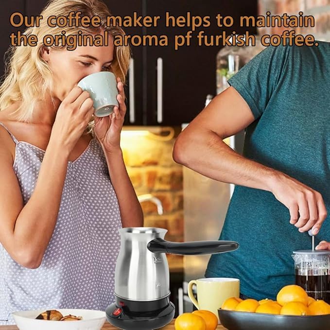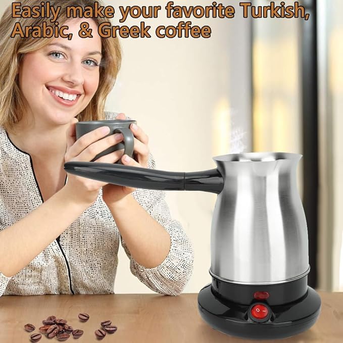 Generic - Electric Turkish Coffee Maker, 600ml Stainless Steel Kettle, LED Indicator, Slim Spout
