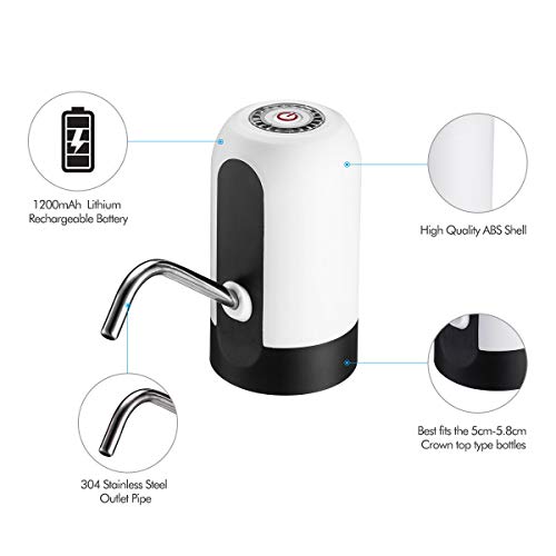 - 💧 5 gallon water pump, USB charging, Easy to install and use. Lightweight, convenient and portable, ideal for pinic, best choice for home, kitchen and office daily using.