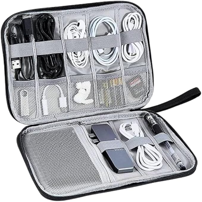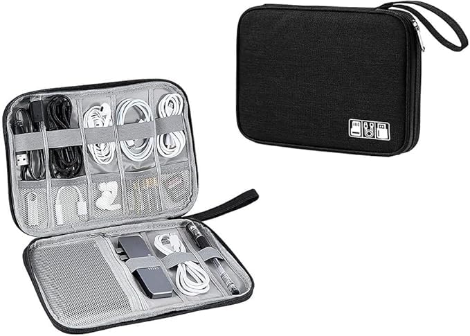 Generic - Electronic Organizer - Cable Case Portable digital Storage Bag for Electronic Accessories cell phone, USB Cables, Power Bank, SD Card, Flash memory stick, charger, Cord, Earphone, earpod (Black)