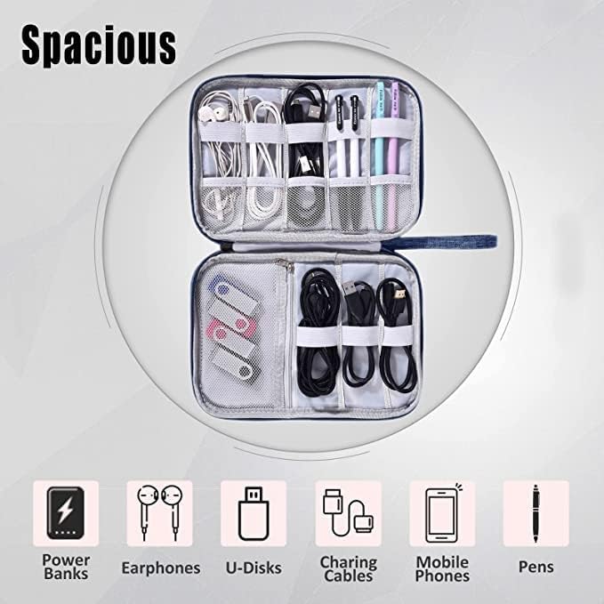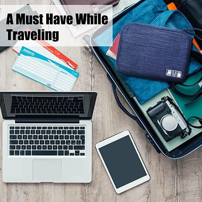Generic - حافظة منظمة للملحقات الالكترونية للسفر كابلات ديجيتال محمولة لتخزين الموبايل وكابلات USB والباور بانك وبطاقة SD وفلاش ميموري والشاحن والاسلاك وسماعات الاذن ازرق غامق معدن