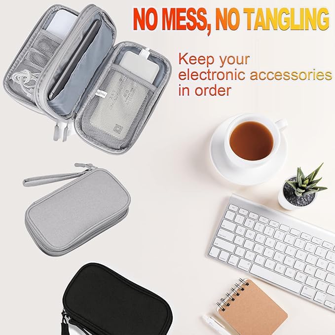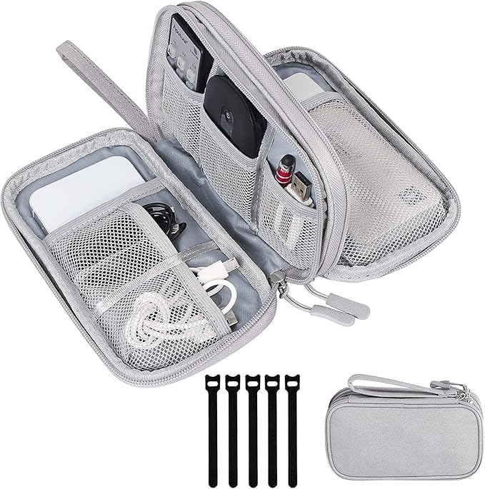 Generic - منظم الكترونيات، منظم كابلات السفر المحمول المقاوم للماء، حافظات الادوات الرقمية، حقائب تخزين للقرص الصلب الخارجي، ذاكرة فلاش USB والباور بانك، حقيبة صغيرة تأتي مع 5 قطع من اربطة الكيبلات