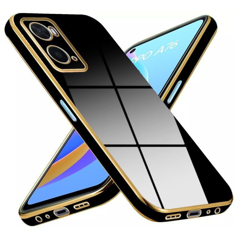 Generic - Electroplated Edge Soft TPU Bumper Full Body Camera Protection Shockproof Protective Cover compatible With Oppo A36 4G / Oppo A76 / Oppo A96 4G - Black