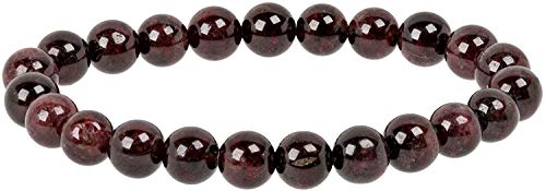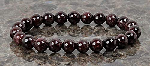 ELEDORO - سوار باور بيد مطاطي للنساء من اليدورو مصنوع خرز الاحجار الكريمة والعقيق 8.5 - 9 ملم 20 سم عقيق طبيعي اصلي بلون احمر بورغندي