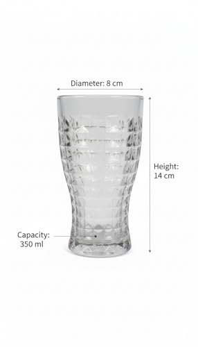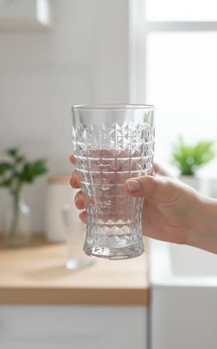 Generic - "كوب زجاجي انيق سعة 350 مل بنمط مكعب مزخرف - انيق ومتين ومثالي للمياه والعصير والقهوة والشاي"