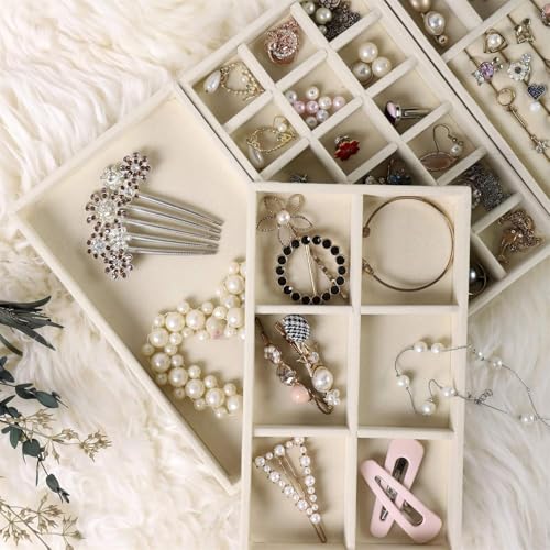 - Crafted from high-quality velvet and composite board, these trays offer a luxurious feel and elegant appearance. The soft, smooth surface prevents scratches and damage to delicate jewelry pieces. The use of durable materials ensures the organizer can withstand regular use and maintain its shape and appearance over time, providing a long-term solution for jewelry storage.