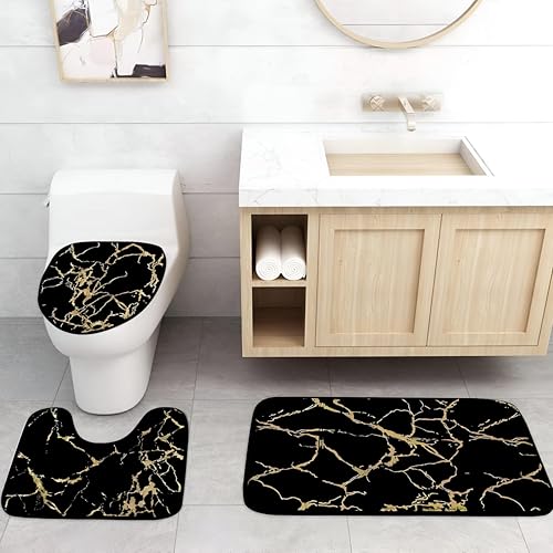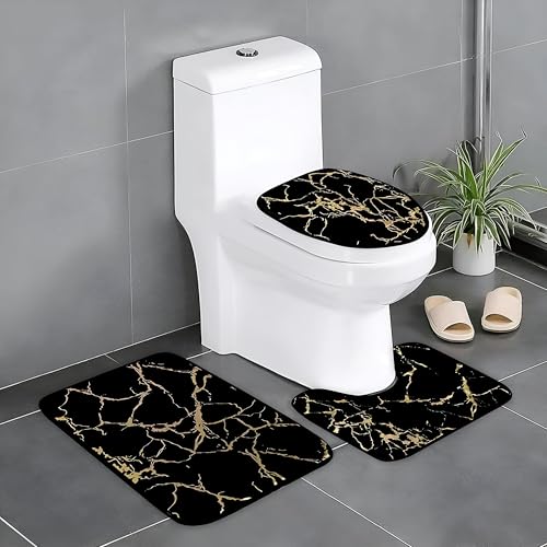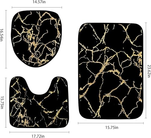 Generic - Elegant Bathroom Rug - Modern Marble Bath Mat Set with Non Slip Toilet Seat Cover, 3 Piece Washable Gold Bath Mat for Luxury Bathroom Experience (Blue Available)