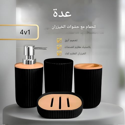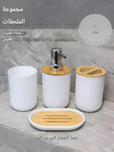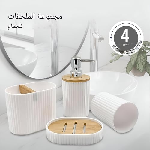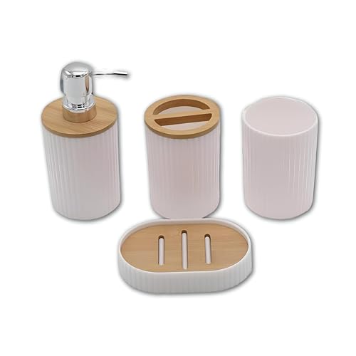 - Turn your daily care routine into a more organized and beautiful experience with our modern 4-piece bath set, designed to add a touch of luxury and simplicity to your bathroom. Each element of this set is coordinated to enhance both functionality and beauty, making every visit to your bathroom a delight.
