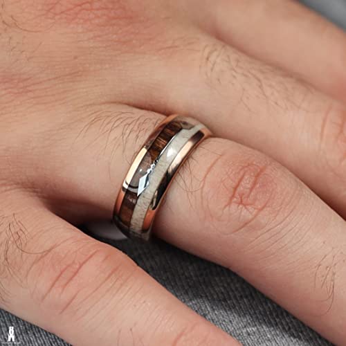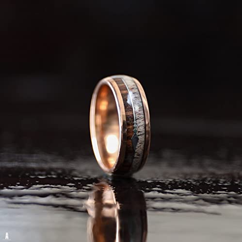 generic - Elegant bear Arrow tungsten ring 8 mm inlaid with natural deer ivory and dark koa wood rose golds