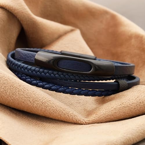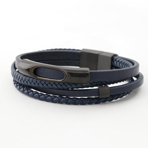 Elegant Bear - Black Vintage Blue Genuine Leather Bracelet