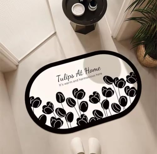 Generic - دواسة باب انيقة بتصميم زهرة التوليب باللونين الاسود والابيض - ماصة للماء وسريعة الجفاف ومضادة للانزلاق للمنازل العصرية - 60 × 40 سم (الشكل 1)