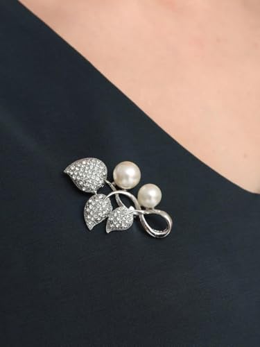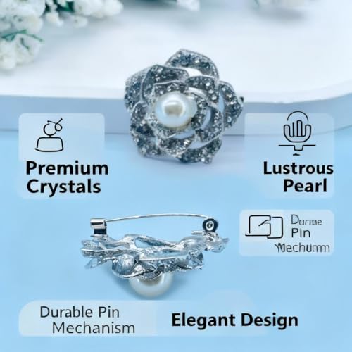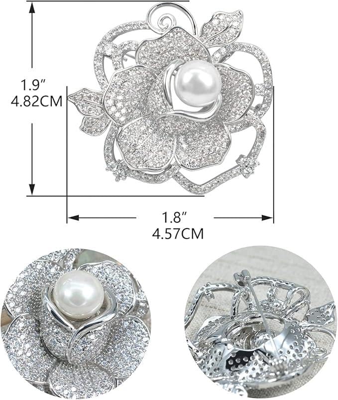 Generic - Elegant Bloom - Six‑petal Flower Brooch featuring a lustrous pearl center, sparkling rhinestones, and a polished silver finish; perfect women's accessory for weddings, galas,
