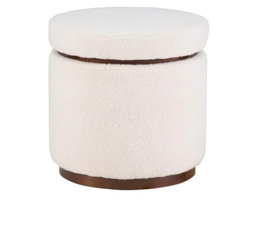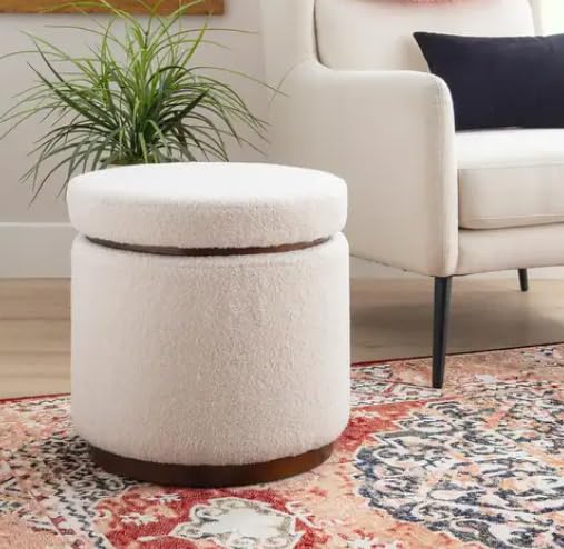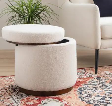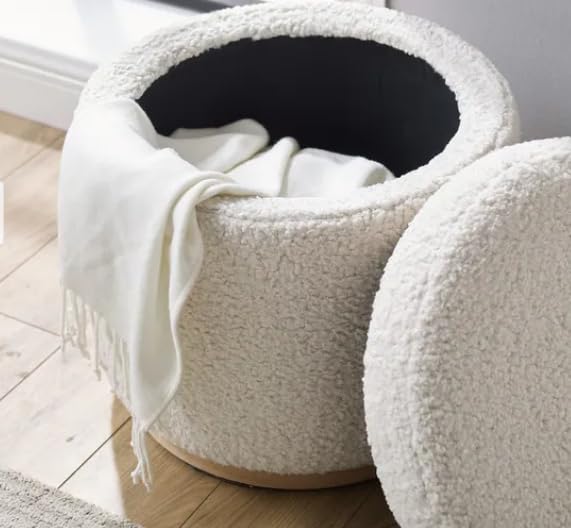 Generic - مسند قدم دائري انيق بوكلي مع مساحة تخزين، مسند قدم ناعم من الشيربا مع حواف من الخشب الطبيعي، مقعد مزخرف لطاولة المكياج وغرفة المعيشة