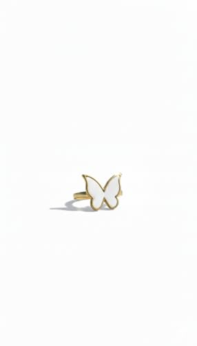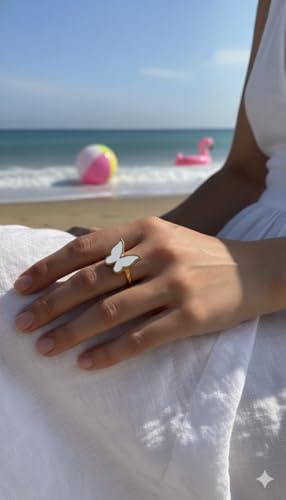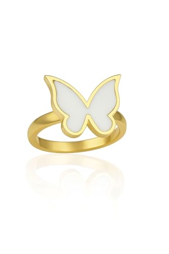 Generic - خاتم فراشة أنيق للنساء - تصميم فردي، ستانلس ستيل مطلي بالذهب عيار 18 قيراط، متوفر بألوان (أبيض/أسود)، مقاوم للصدأ، مثالي للارتداء اليومي والهدايا