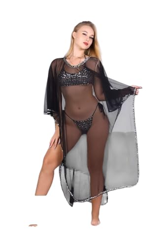 Generic - Elegant Coral Chiffon Beach, Long Flowing Maxi Cover Up with Sequin Details, Sheer Summer Resort Wear