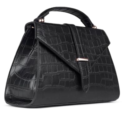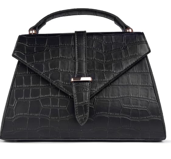 Generic - Elegant Crocodile Pattern Handbag, Top Handle Satchel Purse, Black Faux Leather, Classic Design