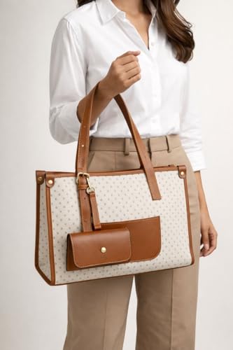Elegant Embossed Design Handbag with Upscale Metal Accents with Functional Front Pocket and Detachable Pocket - Suitable for Work and Daily Outings