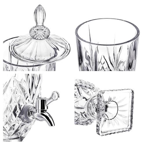- Crafted from thick, food‑safe glass, the dispenser features a cut‑diamond pattern that adds a touch of sparkle; its crystal‑clear appearance and sturdy construction ensure durability while acting as an elegant centerpiece on any table.