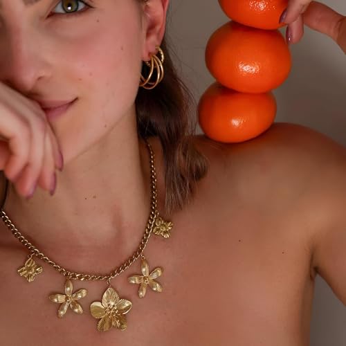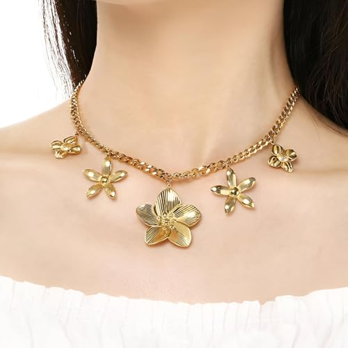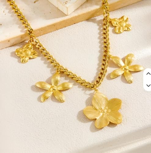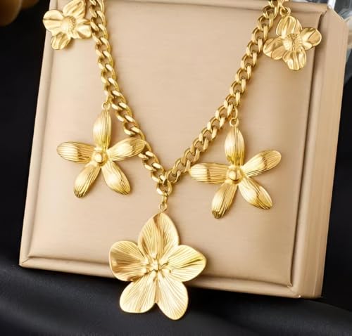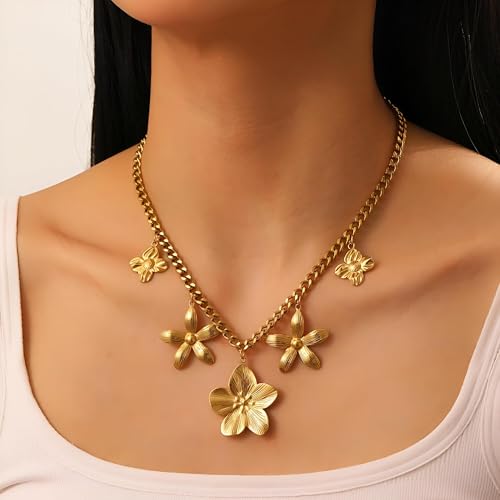 Generic - Elegant Gold Flower Charm Necklace - Exquisite Chain Jewelry Featuring Multiple Floral Pendants for Women’s Stylish Statement Accessory