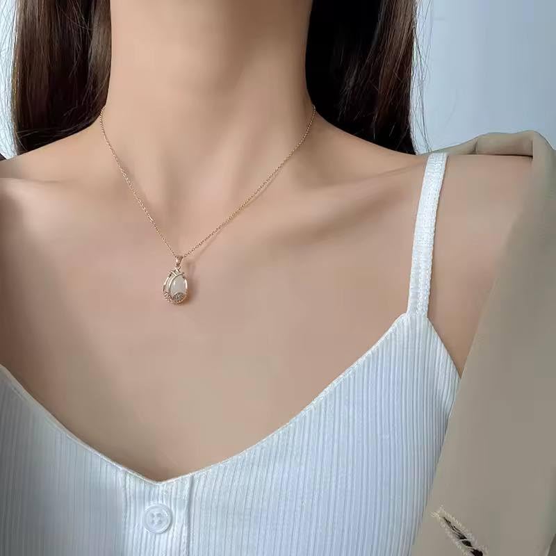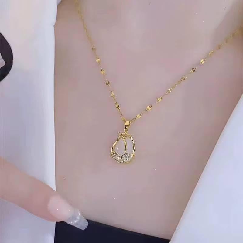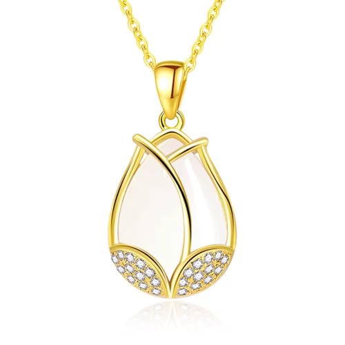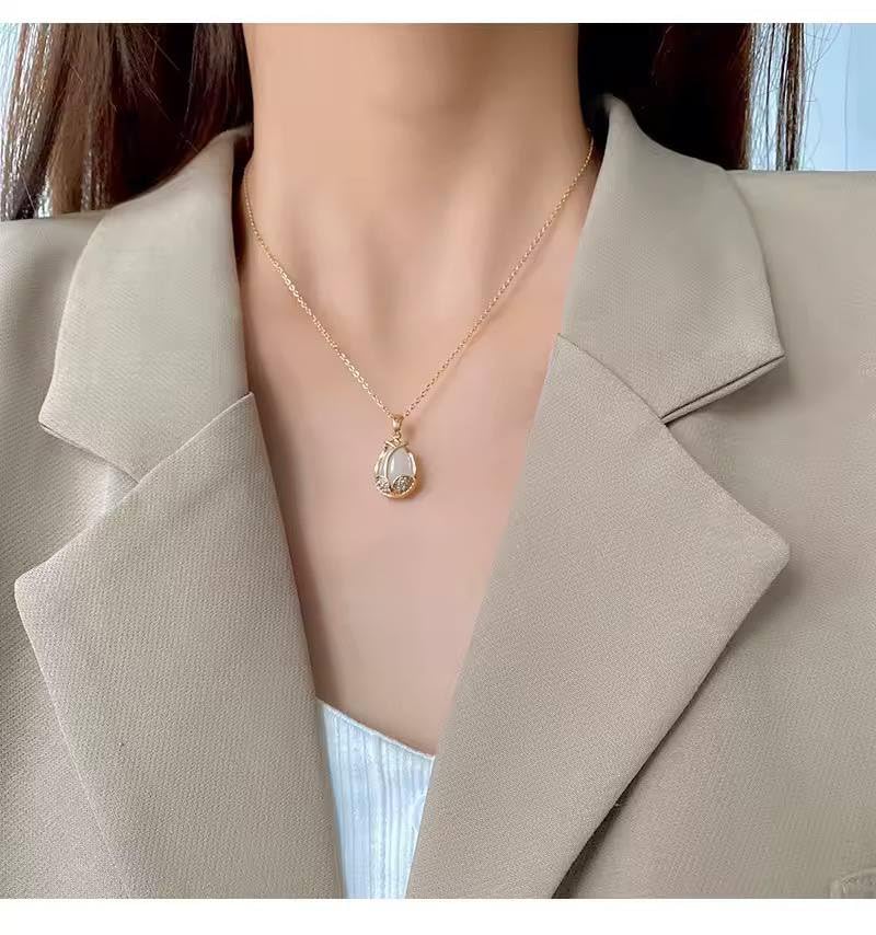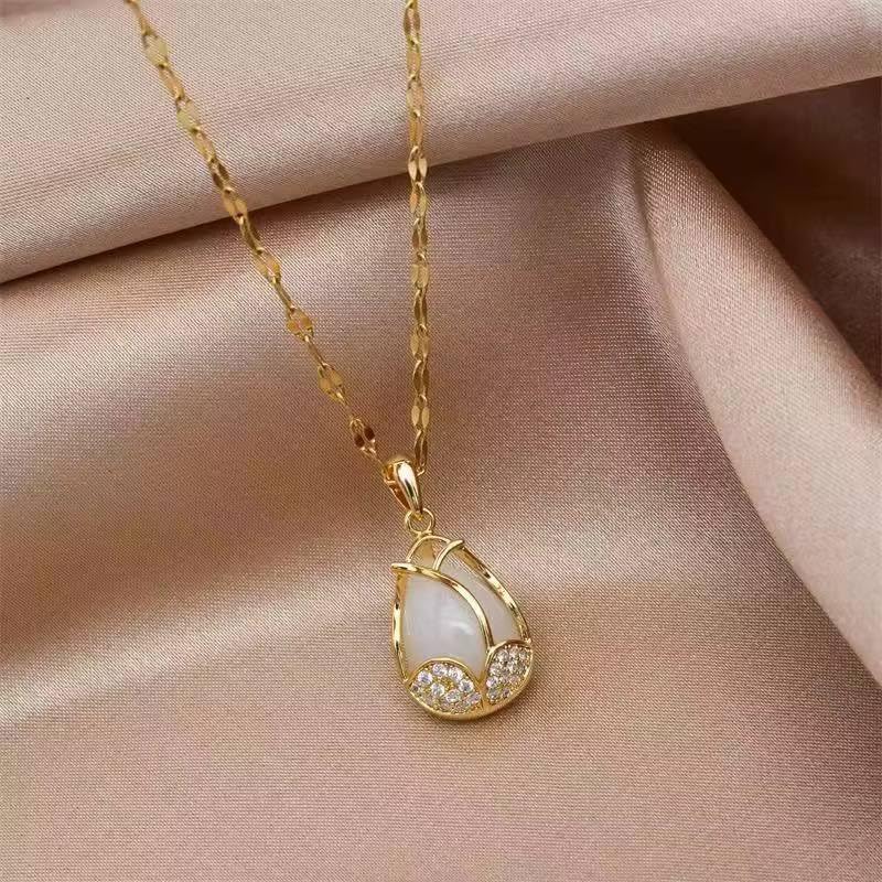 Generic - Elegant Gold Flower Pendant Necklace for Women White Crystal Teardrop Design with Rhinestones Delicate Romantic Jewelry Gift