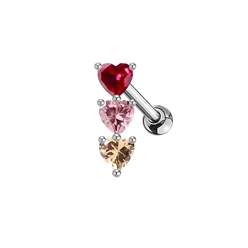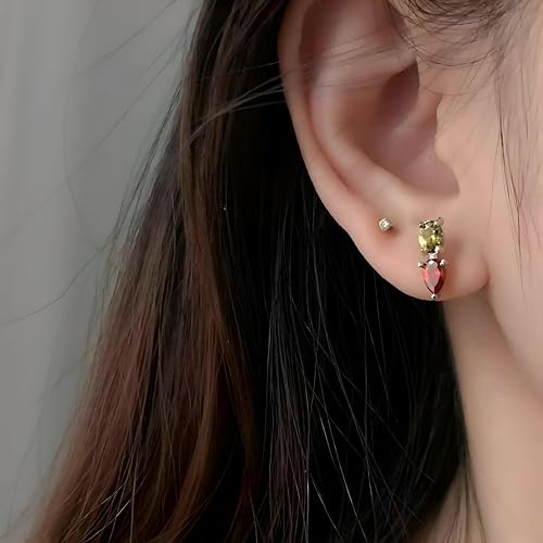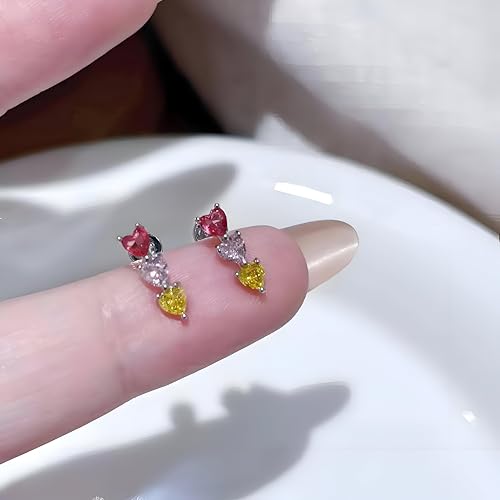 Generic - Elegant Gold Heart Studs Featuring Three Color Stones - Pink, Yellow, and Clear for Versatile Styling