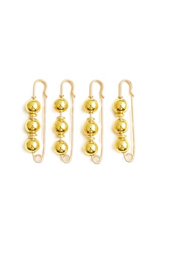 - PREMIUM DESIGN: Set of 4 gold-plated safety pins, each adorned with three lustrous metallic spheres for an elegant decorative touch