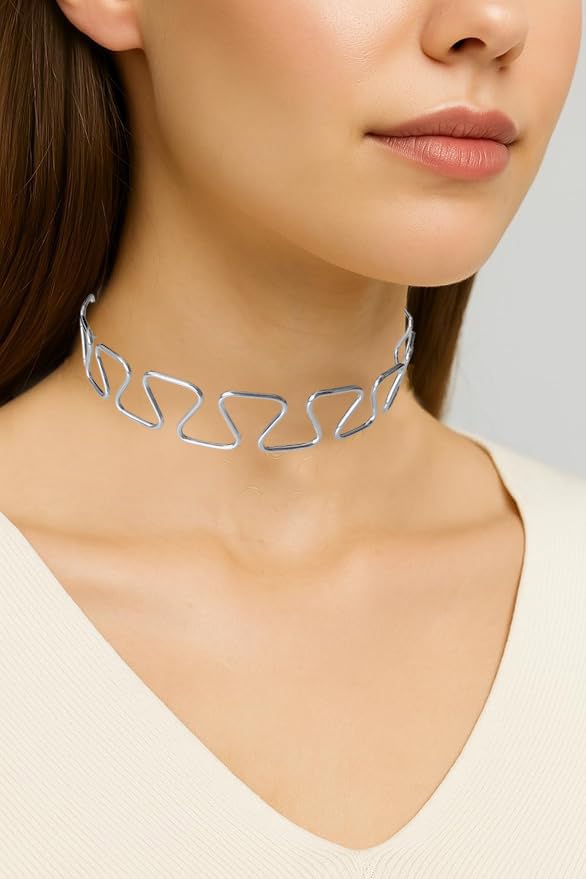 Generic - Elegant Gold/Silver Stainless Steel Choker Necklace, Adjustable Spiral Design, Lightweight Collar Style Fashion Jewelry for Women