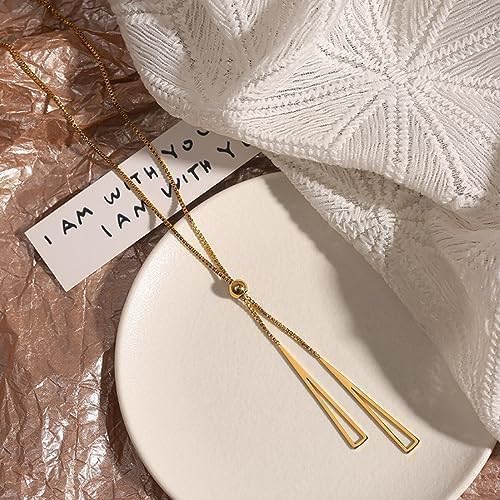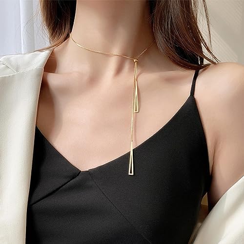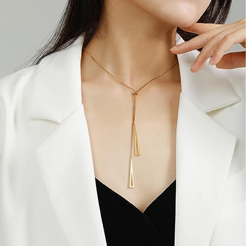 Generic - قلادة انيقة ذهبية اللون على شكل حرف Y، دلاية مثلثة مزدوجة، سلسلة مربعة