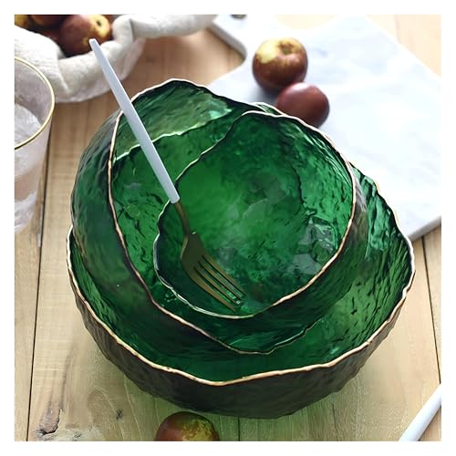 Generic - Elegant Green Bowl - A chic glass serving set with three sizes, perfect for soups, salads, popcorn, fruit, vegetables and snacks; adds a luxurious yet simple touch to any kitchen décor.