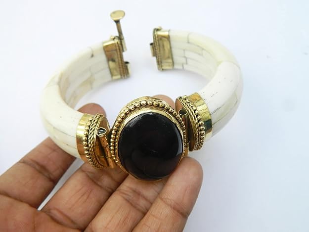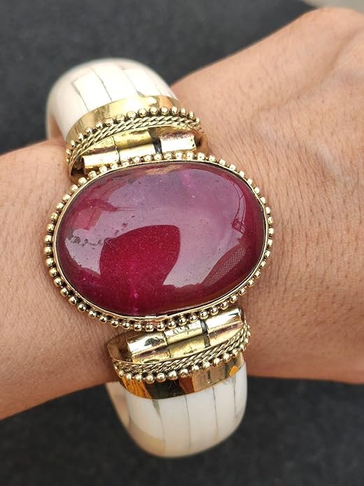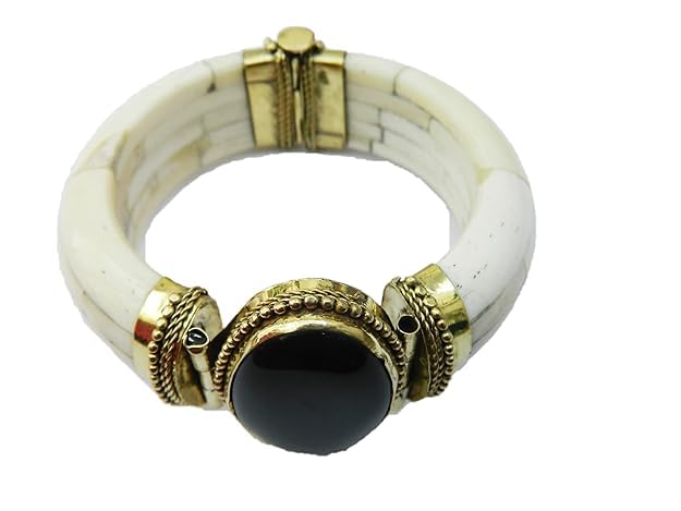 AREXOL - Elegant Handmade Indian Natural Bone Bangle with Colorful Stone and Intricate Copper Setting for Unique Stylish Daily and Special Wear Accessory