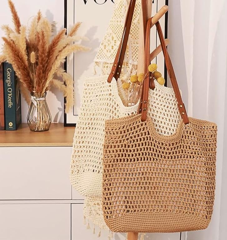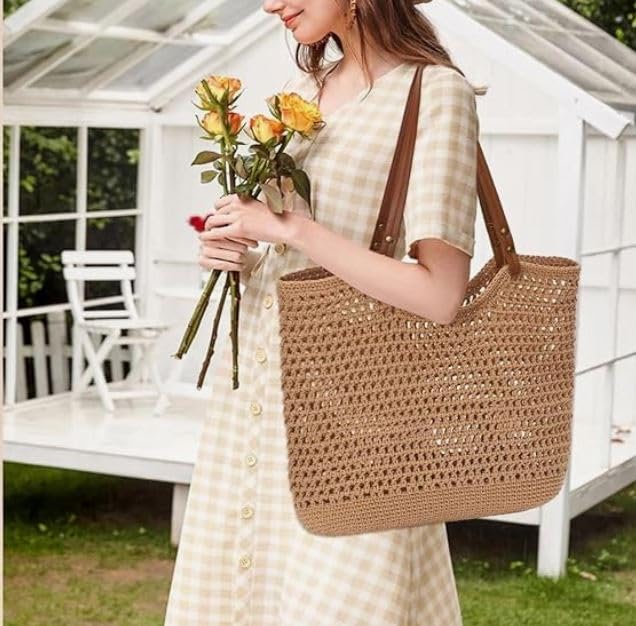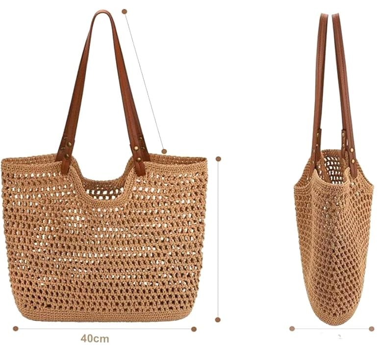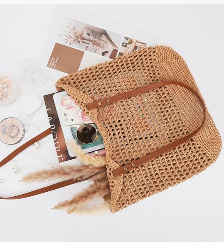 Generic - Elegant Hollow Out Shoulder Bag For Girls Crochet & Without Lining - Havan Camel - Multi Use - Size 40cm - Leather Hand Length 60cm