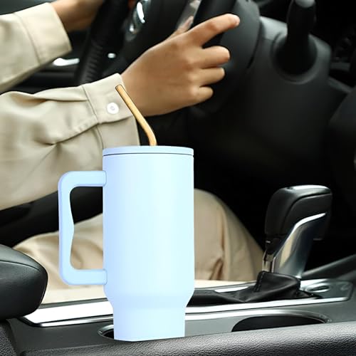 - Equipped with a convenient straw, this tumbler is designed for easy sipping. The cup's mouth includes a food-grade silicone ring that forms a secure seal, effectively preventing any leaks. Additionally, the thermos cup comes with a handle, making it easy to carry and use on the go.