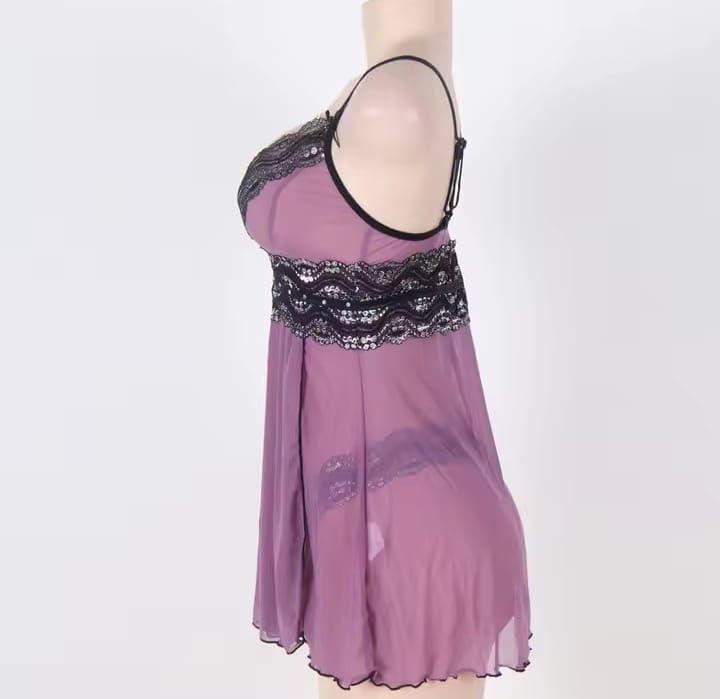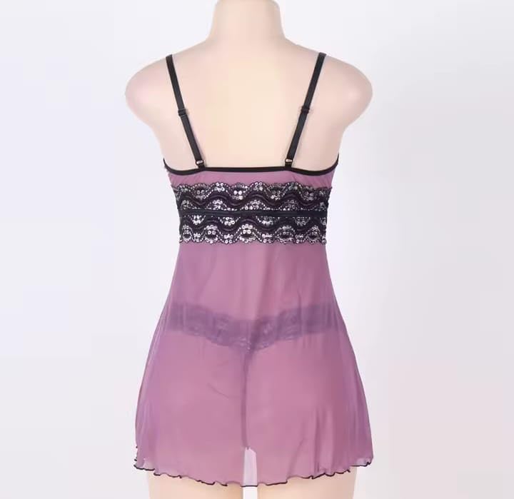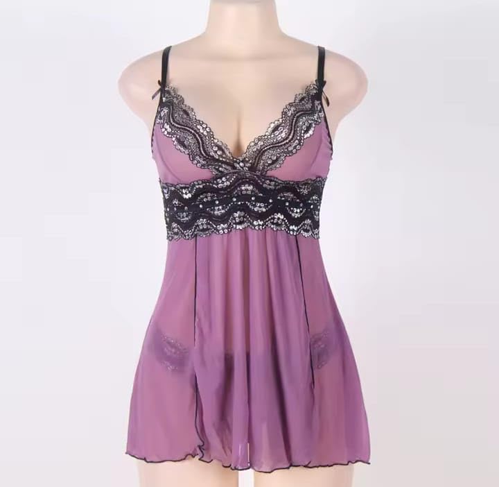 Generic - Elegant Lace-Trim Nightgown, Mauve Pink, V-Neck Satin Babydoll Sleepwear with Black Floral Lace