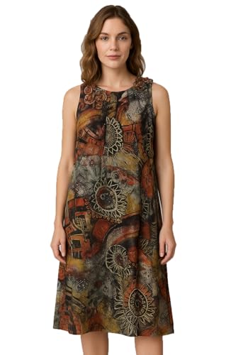 Generic - فستان شيفون مبطن انيق بطباعة فنية وزهور على الكتف - مثالي للمناسبات والنزهات (توماس وسبليندور)