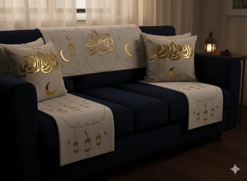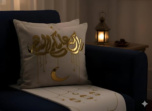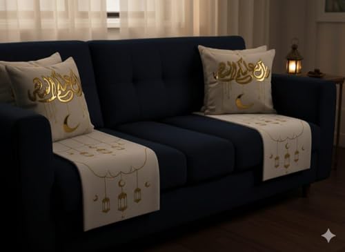 - Includes one elegantly embroidered runner and two plush cushions, creating a coordinated Ramadan look.
