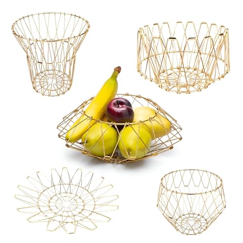 Generic - سلة تخزين فاكهة معدنية أنيقة قابلة للتعديل من الفولاذ المقاوم للصدأ للفواكه والخضروات بتصميم زخرفي، للمطبخ أو طاولة الطعام أو ديكور المنزل بلمسة نهائية ذهبية