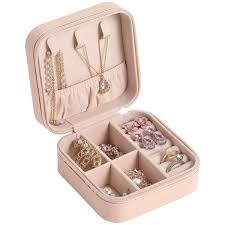 Generic - شنطة سفر صغيرة انيقة للمجوهرات - صندوق منظم من جلد البولي يوريثين للخواتم والاقراط والقلائد والاساور الحلقية - شنطة تخزين صغيرة محمولة بسحاب