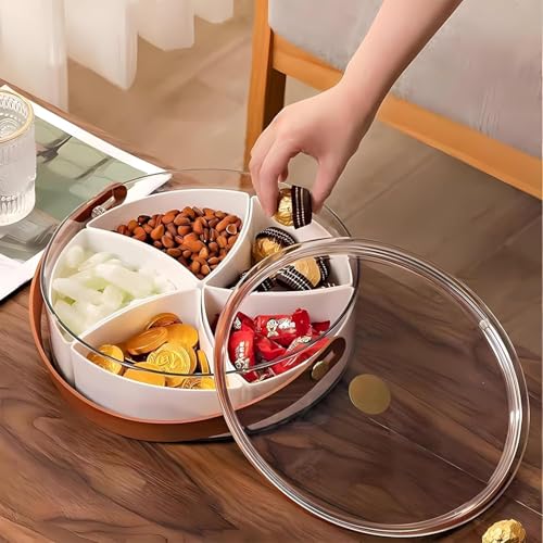 Generic - صندوق تاسلي انيق متعدد الاقسام مع غطاء شفاف ومقبض متين لتقديم المكسرات والحلويات في الطعام والمناسبات، صينية اكريليك