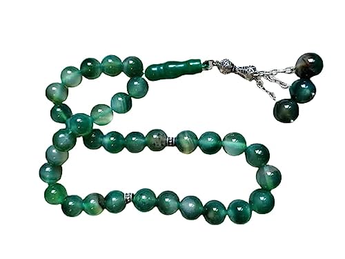Generic - سبحة أنيقة مصنوعة يدويًا من حجر عقيق أخضر طبيعي مكونة 33 خرزة حافظة بسيطة للكبار الجنسين