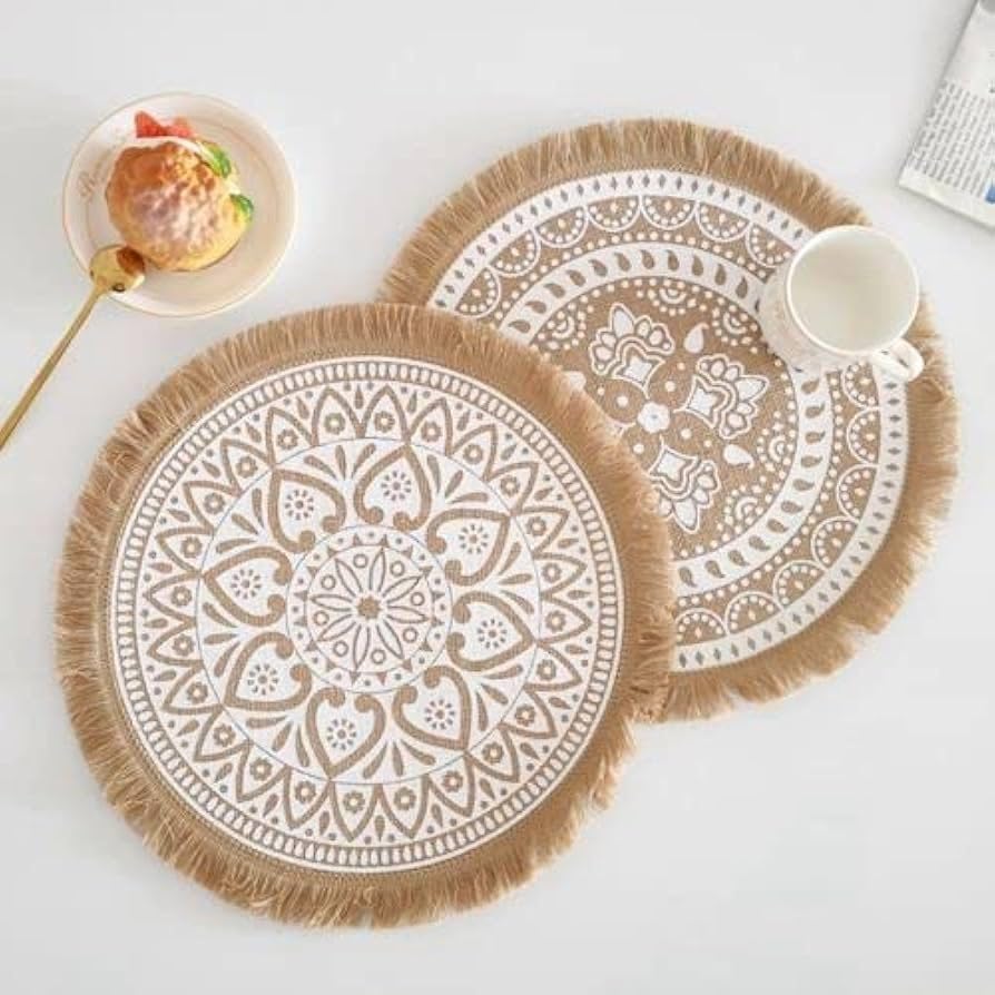 - <p> مفرش الخوص الطبيعي الأنيق هو الخيار المثالي لكل من يبحث عن الجمال والبساطة في آنٍ واحد. صُنع من خوص طبيعي عالي الجودة يمنحك مزيجاً من الفخامة والدفء الريفي الذي يضفي لمسة مميزة على أي مساحة داخل منزلك. يتميز بتصميم منسوج بدقة متناهية تعكس الحرفية العالية وتمنح المفرش مظهراً متناسقاً ومتيناً يليق بجميع أنماط الديكور سواء