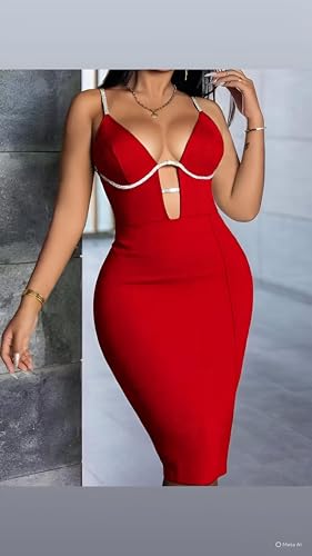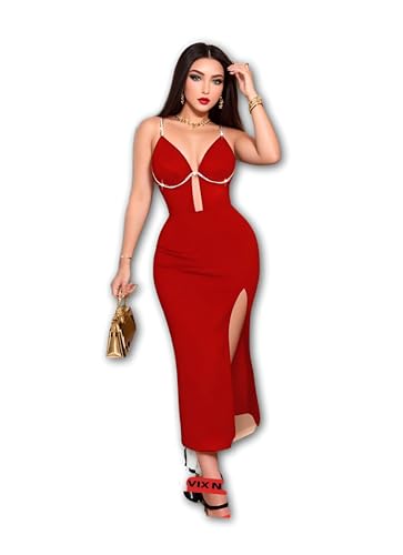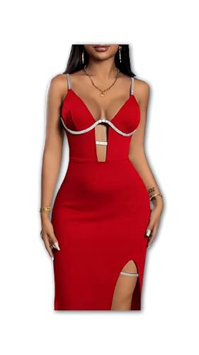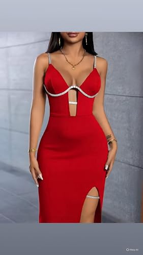 Generic - Elegant Party Dress - Tight Midi Black Dress for Women with Rhinestone Trim, Cutout Details, Spaghetti Straps, High Slit, and V-Neck, Perfect for Evening Wear from size 50 kg to 85 kg