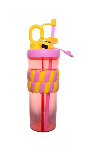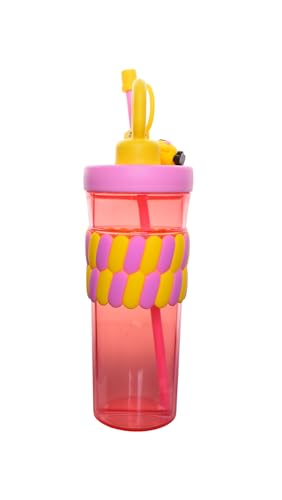 Generic - Elegant Plastic Ice Cup with Cover and Straw, 700Ml - Pink