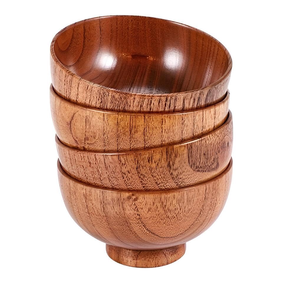 Generic - وعاء تقديم انيق - طبق خشبي مصنوع بشكل جميل للفواكه والسلطات، لا غنى عنه للترفيه الصديق للبيئة (4 قطع 14 سم)