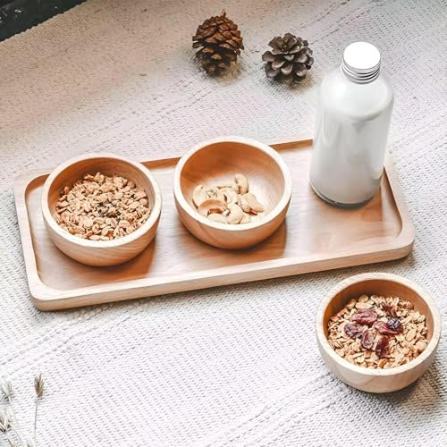 Generic - Elegant Serving Kit - A compact bamboo serving kit with three small bowls and a rectangular coaster, perfect for nuts, dipping sauces, or spice blends, offering natural finish and sophisticated appeal