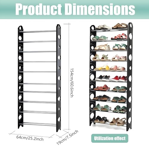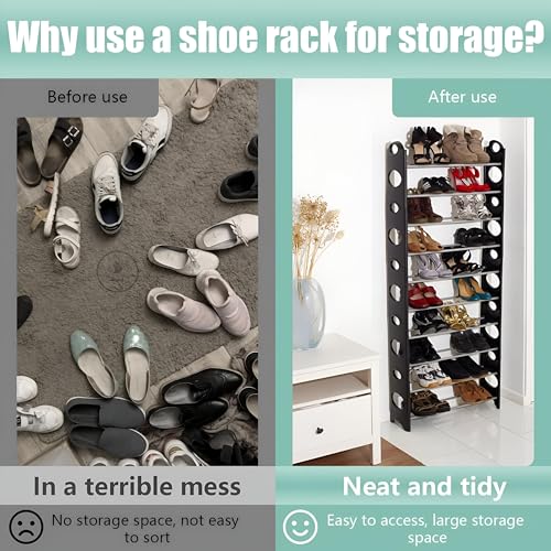 - Available in both 6-tier and 10-tier options, this shoe organizer adapts to your needs, providing ample storage capacity while maintaining a compact footprint to maximize space efficiency in your home or workspace.