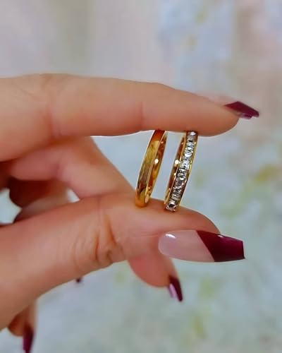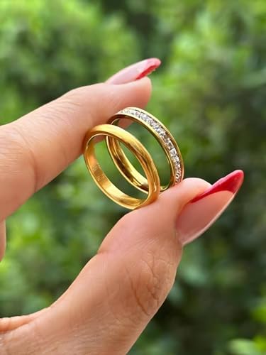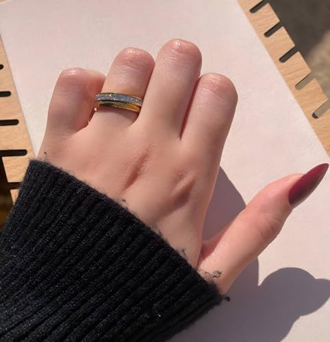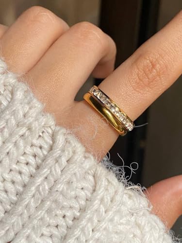 Generic - Elegant Stainless Steel Ring – Two-Tone Silver & Gold Band with Crystals – Durable & Tarnish-Resistant